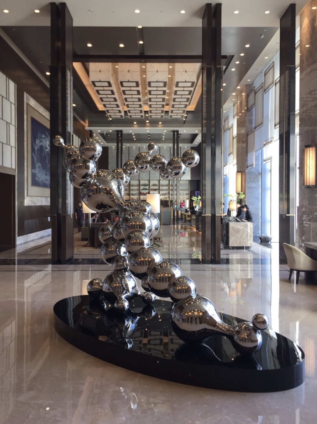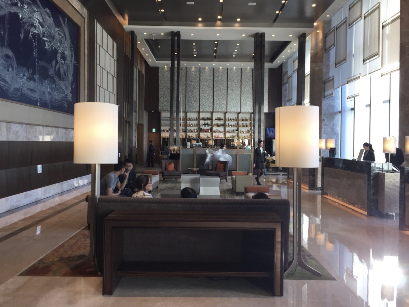 大門就像是在建築物裡面的一間高級公寓,但是到了大廳便變得很氣派,大片落地窗面向南邊的山,撇除平房以及違建,景色是不錯的,挑高設計也很漂亮,在一棟像是商辦大樓裡面做這樣的設計很不錯,有點像是韓國首爾時代廣場萬怡。
