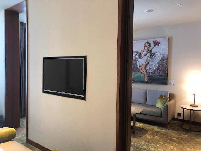 這是俊基第一次入住套房,非常滿意。套房不算大,在萬怡裡算是基本套房,但房間能有客廳還是很爽,浴室則在臥室的另一側,也非常大,有獨立淋浴間、有兩個洗臉台可以使用。但浴缸位置普通,如果可以在窗邊更好。洗手間有兩個,一個在玄關旁,一個在浴室區,浴室區的馬桶則是很奇怪的位於窗邊還面向外面,這樣的小角落是希望上廁所時可以冥想嗎